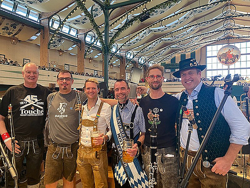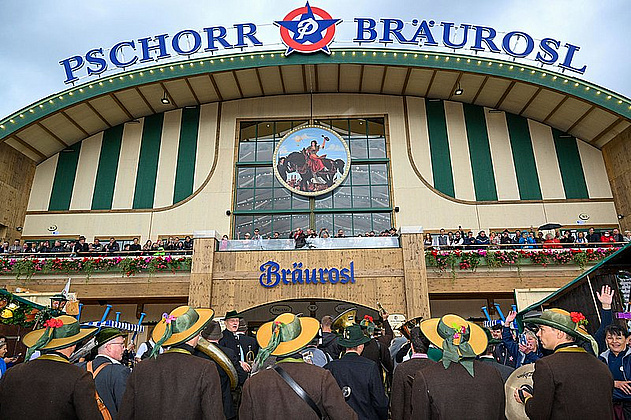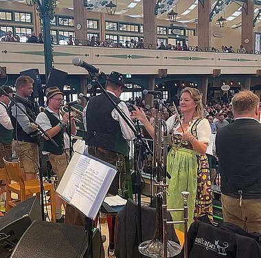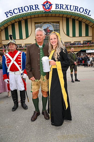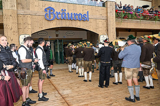 Begonnen mit dem feierlichen Wiesn-Einzug am 17.09.2022. „Es gfreit mi ganz besonders, dass wir beim Einzug neben unserer Festkapelle Josef Menzl von narrisch vui meiner befreundeten Musikanten aus ganz Bayern, Österreich und Südtirol und den Münchner Böllerschützen begleitet wurden. Eine Schau war natürlich auch unsere fesche Bräurosl Verena Gaulinger.“erinnert sich Wirt Peter Reichert. Einmarschiert sind der Wirtskutsche und dem Bedienungswagen voraus, sage und schreibe insgesamt 80 Musikanten und Schützen.