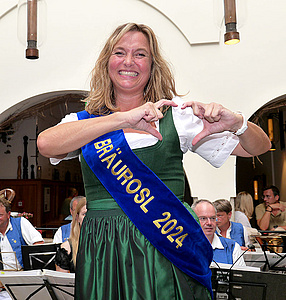 Zwar wird im Festzelt längst nicht mehr gejodelt, jedoch sorgt die Bräurosl immer für gute Stimmung und kümmert sich mit viel Herz um die Gäste des Festzeltes.